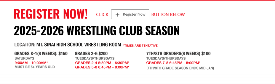 2025-2026 Wrestling Registration - Mt Sinai Residents Only